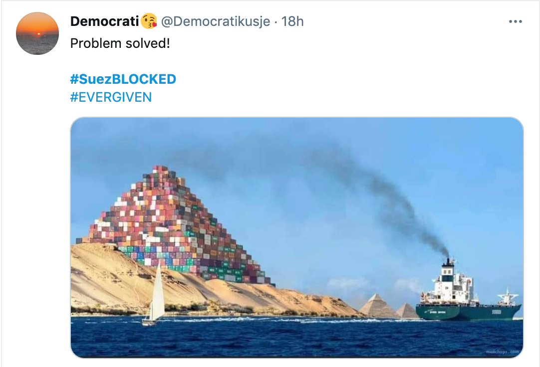 I admit, I’m fixated on the stuck container ship that is now beginning to slow down the world’s commerce by at least 12%. Over 300 ships are waiting to go through the canal —