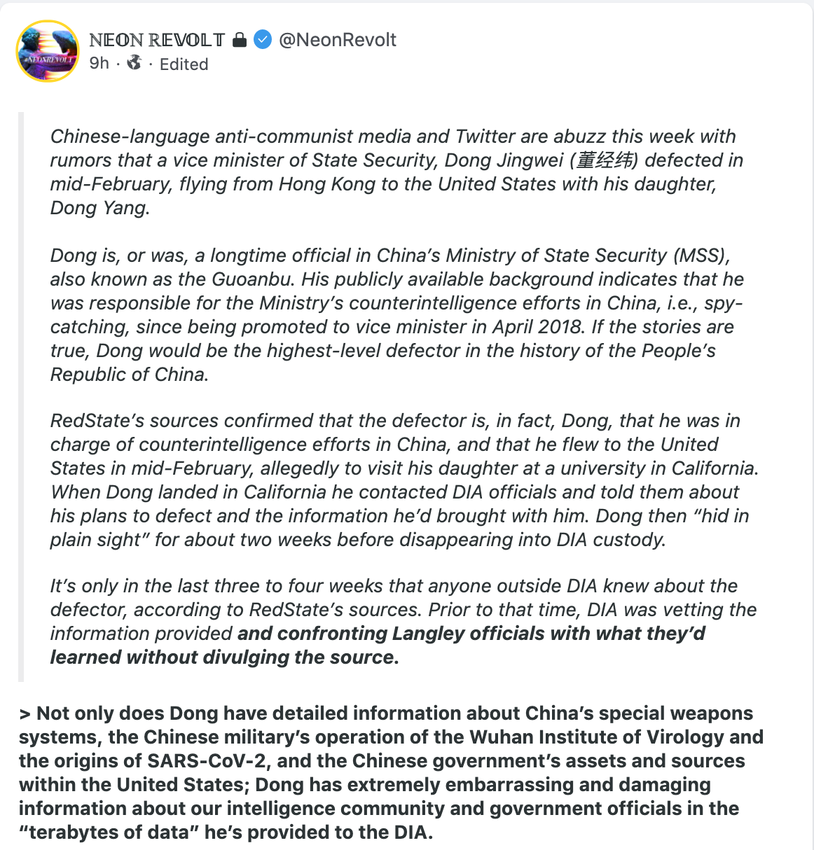 BTW: we’ve got to remember that even though the virus was manufactured in China, it was conceived and designed in the United States. As usual. Some doctor pointed this out, can’t remember which one.