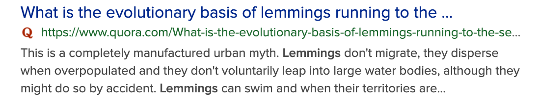 Oh but wait a minute. Apparently, the lemming idea is an “urban legend.”