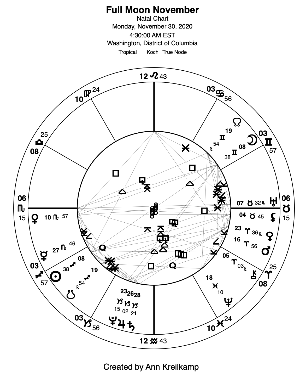 Notice that volatile, unpredictable, earthshaking Uranus at 7°32° Taurus just happens to be in a near-exact conjunction to the 6°15 Descendant for this Full Moon set for Washington, D.C. It thus opposes the Scorpio Ascendant with Venus close by. A powerful time. Uranian shocks erupting from the Scorpionic deeps.