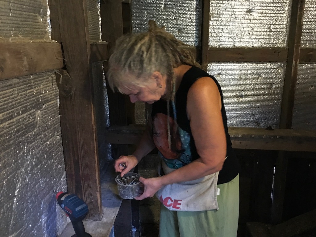 Plus another group to continue the work of making sure weasels can’t get in to the chicken coop. (The young chickens have been roosting high up in a tree ever since their horrible ordeal. We can’t put them back in the chicken house (and clip their wings), until we’re sure they will be safe there).