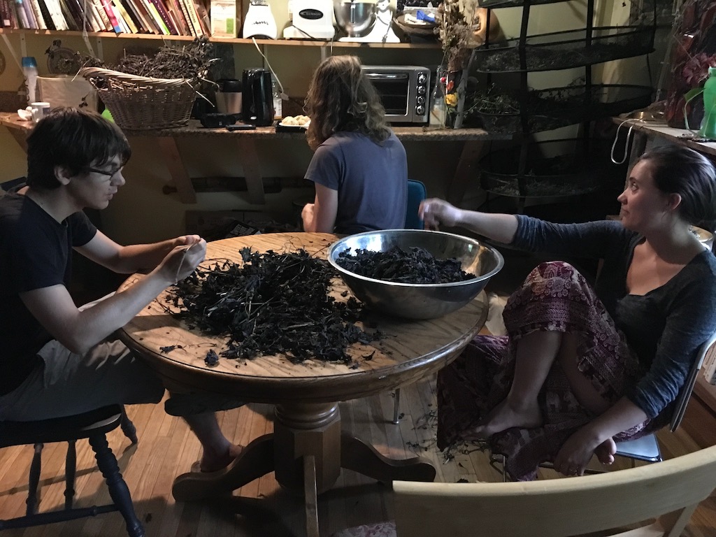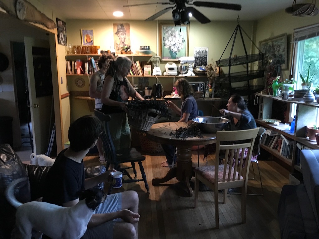 Two tasks: one group to strip the dried perilla, which began to grow wild here a few years ago, and we didn’t find out until last year, thanks to Jenny, who’s from Asia, and tells us that it’s the world’s best herb! I’ve tried the leaves as a tea. Strongly warming!
