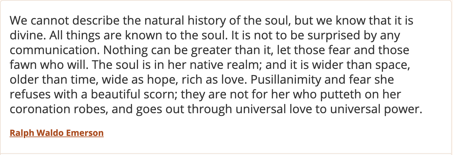 Ralph Waldo Emerson, transcendental poet, philosopher, and champion of American individualism in the mid-19th century, knew how the ensouled heart’s LOVE transforms the world.