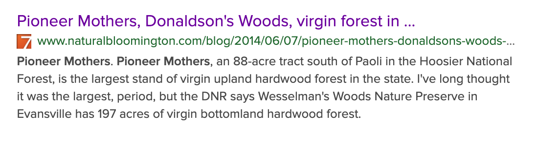 http://www.naturalbloomington.com/blog/2014/06/07/pioneer-mothers-donaldsons-woods-virgin-forest-indiana