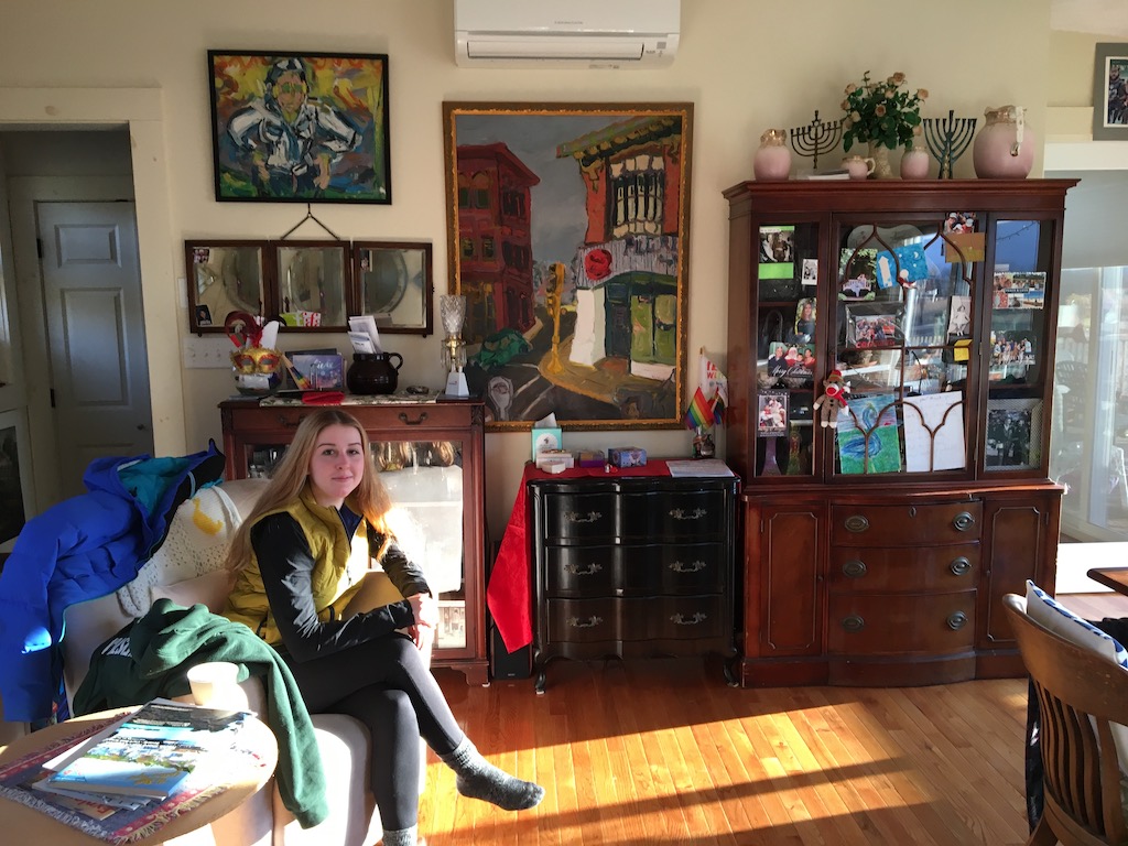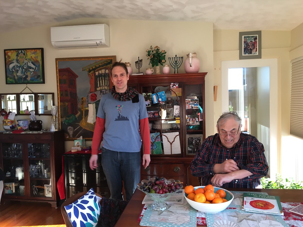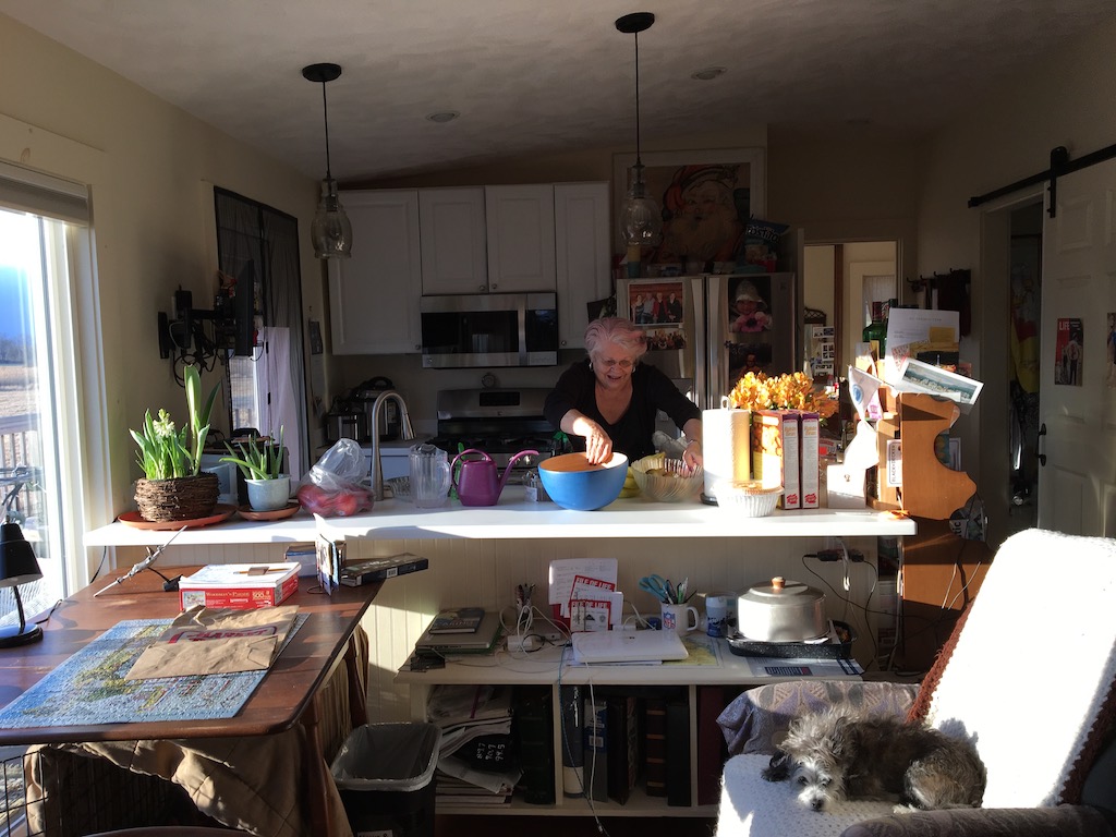 Ray, at home, spends most of his time lying down, and suffers from lots of physical ailments, including diabetes. In fact, this was the one of the running themes of my visit. All of us are, obviously, aging, and many of us beginning to show it, big time. Besides my tremor, Nancy is in pain all over, says she’s about to visit a specialist, and Gil worries about my son Sean and grandson Drew doing so much intense rowing; says he tried it for one semester in college, and it hurt his back. And that it still hurts! He’s 42. Then, yesterday evening, during dinner at Sue’s with old friends Rose and Dan, Rose, 62, who has had a bad left knee for years, from years of intense snowboarding, she says, on her final ski run last March of a two-week vacation on western mountain slopes, broke her pelvis, also on the left side, and five weeks ago, finally had that knee replaced. She still walks with a pronounced limp. “I never appreciated how being handicapped affects you until I became handicapped!” Amen!