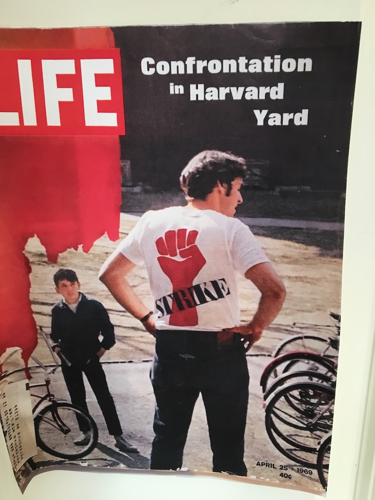 Yesterday was our most full day of this January visit. In the morning “Ex”-daughter-in-law Sue, Kiera, and I drove to Essex to visit dear old friends Nancy and Ray, and their son Gil who now lives with them to help care for Ray,  diagnosed with Alzheimer’s nine years ago. Here’s student architect Ray, back in 1969, on the iconic Life Magazine cover sporting the iconic T-shirt he designed for the protests.