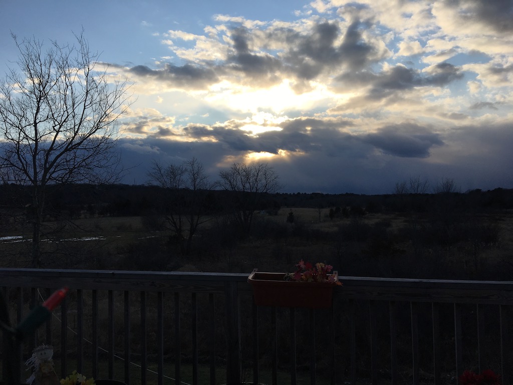 Yesterday, I got pics of Ray and Nancy and Gil’s wonderful place, full of light, and as Nancy says, with great appreciation, “We have sunsets every evening!” Here’s yesterday’s sunset view from her sliding door to the porch and beyond.