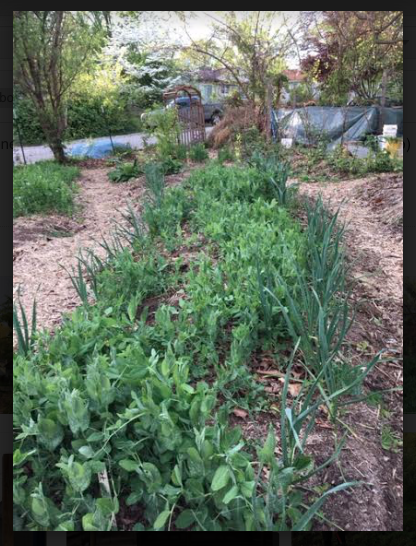 Cold-weather crops went out a few weeks ago, like these peas and onions: