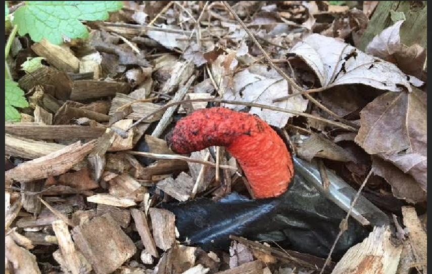 Various kinds of shrooms are popping up in the garden, but none so astonishing as this “stinky” mushroom (it attracts flies) — otherwise known as “limp dick”?