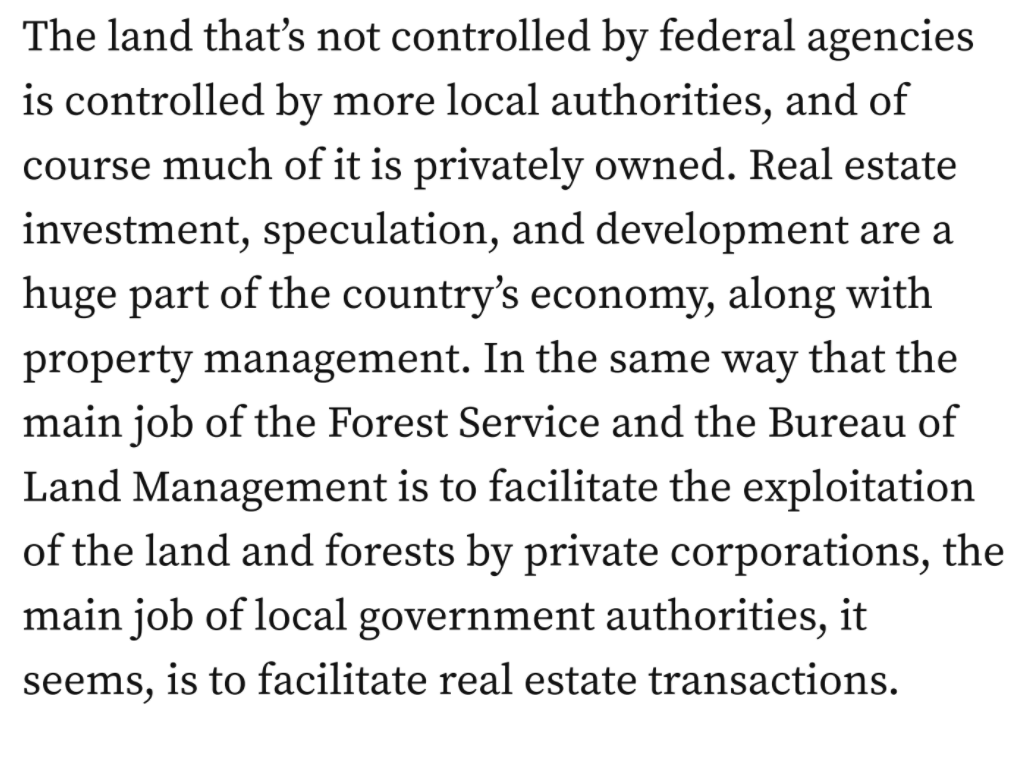 Lousy land management, plus human habitations in forests where they shouldn’t be. No doubt, this also contributes. But it’s when you put this third cause in what can be argued to be its possible framework, that it really makes sense. Here’s a few excerpts from a post sent to me by reader SueM, by David Rovics: