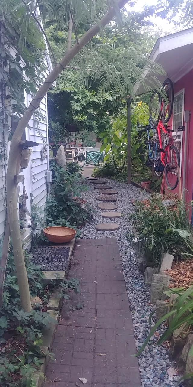 This is a small community, say six to twelve adults. There is much interaction and camaraderie. There is a shared interest in Paradise Gardening, i.e. the development of a way of living on earth that is sustainable, democratic and satisfying. Sustainable means beneficial, or at least not injurious to Gaia, the planetary ecosystem. Democratic means beneficial, or at least not stealing from, our fellow humans (which requires considerable restraint since, as Americans, we are born with a license and it sometimes seems even a mandate to steal). Satisfying means beneficial to our health and happiness, and herein lies the crux of the matter: it is above all essential that we consider our lifestyle, with its implied limitations on, say, gasoline (use as little as possible, ideally none), or purchased food (use as little as possible, ideally none), etc., not as ‘self-sacrifice’ but as liberation.