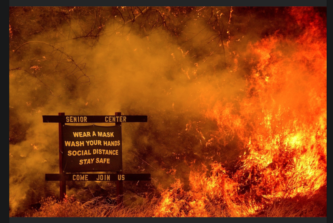 First, within the United States. Ongoing even now. Though the photo above, by Noah Berger (@NoahBerger 3884) appears to be from the California fires, it might as well have been taken in any of the Democrat-run cities currently being overrun and burned by Antifa masquerading as Black Lives Matter.