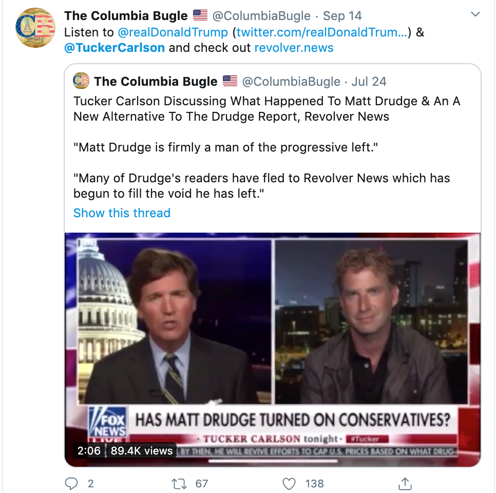 For a much fuller treatment of the history, meaning, and application of so-called Color Revolutions, read through this next post. It is long, takes a while, and VERY worth it. Revolver.news claims to be the new Drudge, which yes, very definitely, did lose its way a few years ago. Not sure whether Darren Beattie, the person Tucker interviewed, is the same one that wrote the story in Revolver, but likely.